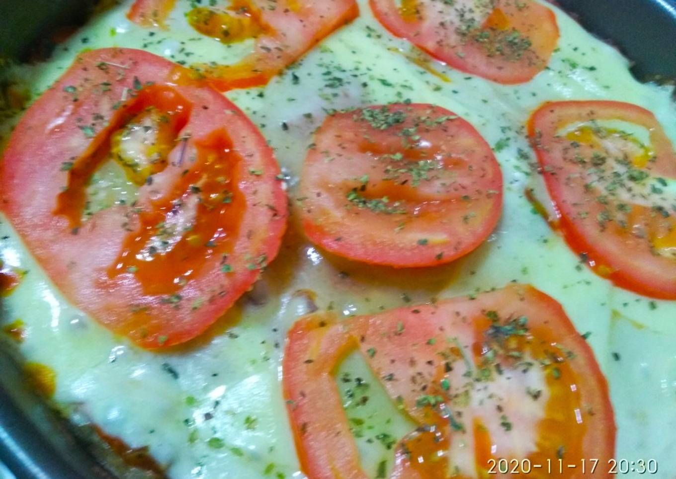 - A la s 15 m sacar del horno, esparcir la salsa, el queso muzarella y el tomate cortado en rodajas.