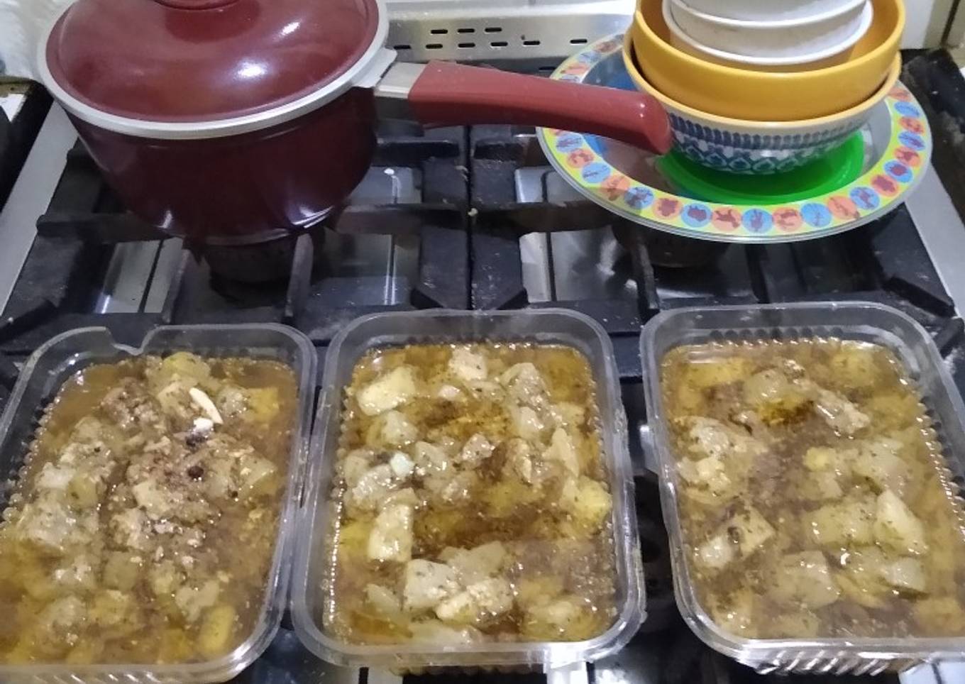 - Una vez que las pelamos las vamos a cortar en cubos gruesos también se pueden hacer en rodajas las vamos a llevar a una olla y las vamos a cubrir con el vinagre
