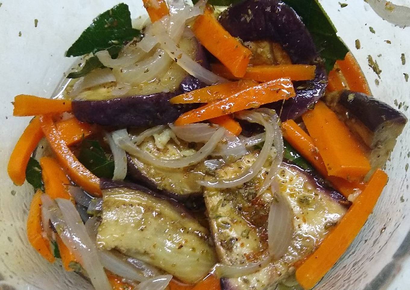 Instructions to make to make Escabeche de zanahoria, cebolla y berenjena