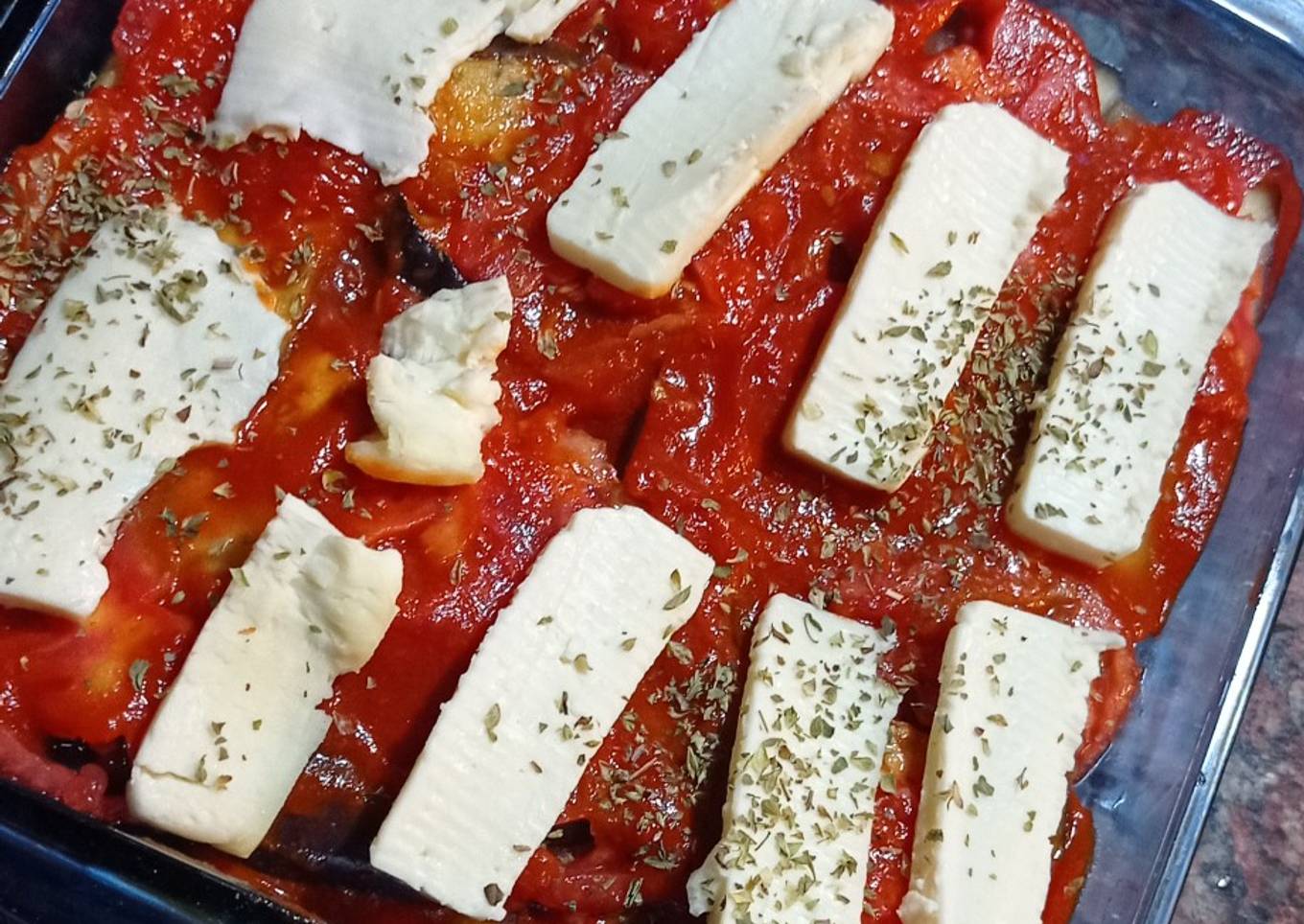 - Agregar otra capa de berenjena salsa y queso cremoso.