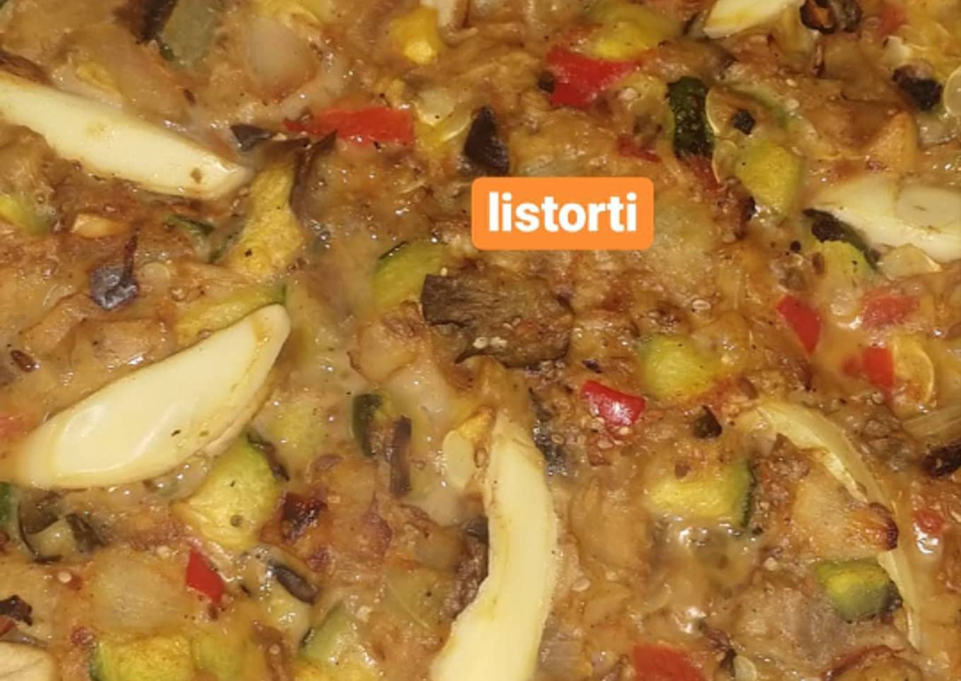 - Cortar la berenjena y el zapallito, agregar lo salteado previamente, el ajo picado chiquito, el pimentón, la pimienta de cayena, la pimienta, la sal, un huevo y mezclar.