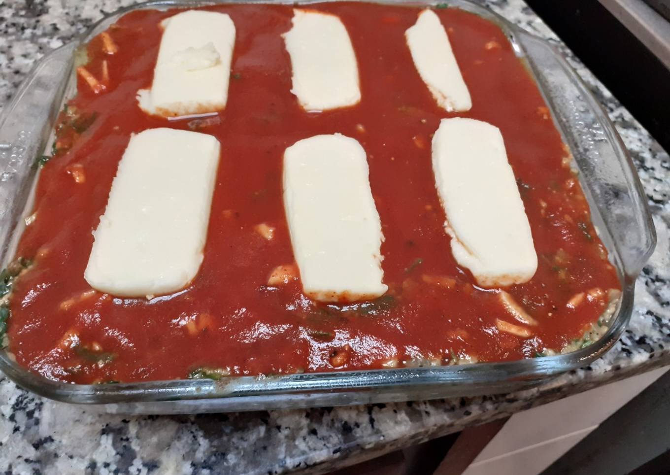 - Encima tapamos(si lo desean)con un poco de salsa de tomate, y encima de este cortamos en pedazos el queso y lo ubicamos.