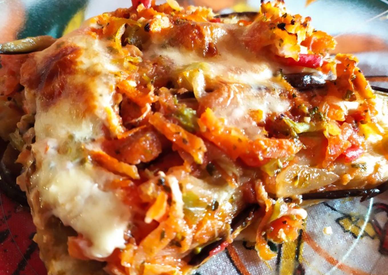 - Ponemos una capa de berenjenas, otra de jamón y un poco de la salsa con verduras que hicimos, queso y berenjenas otra vez