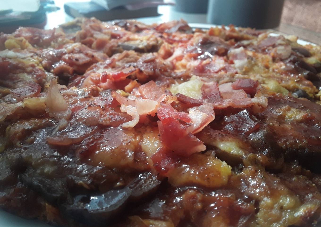 Son berenjenas asadas con salsa de tomate cebolla y zanahorias salteadas queso y tocineta caramelizada... Receta del recetario de Zandry https://Cookpad.com/co/perfil/1581045 Para Zandry s贸lo agradecimientos... no se olviden de visitar sus recetas...