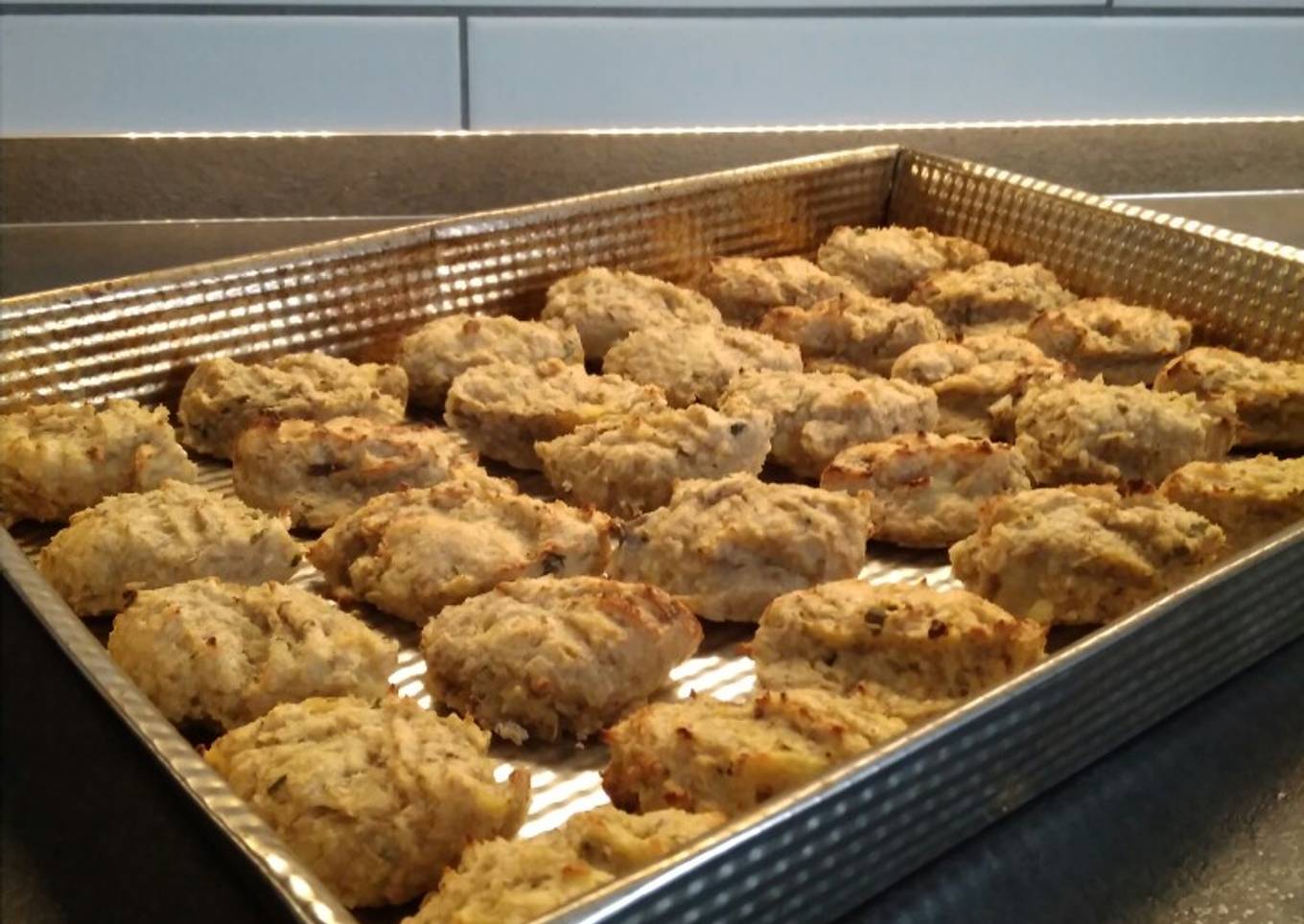 - Agregarle el resto de los ingredientes, mezclar bien. Con la ayuda de 2 cucharas, armar las croquetas y ponerlas sobre una fuente aceitada.