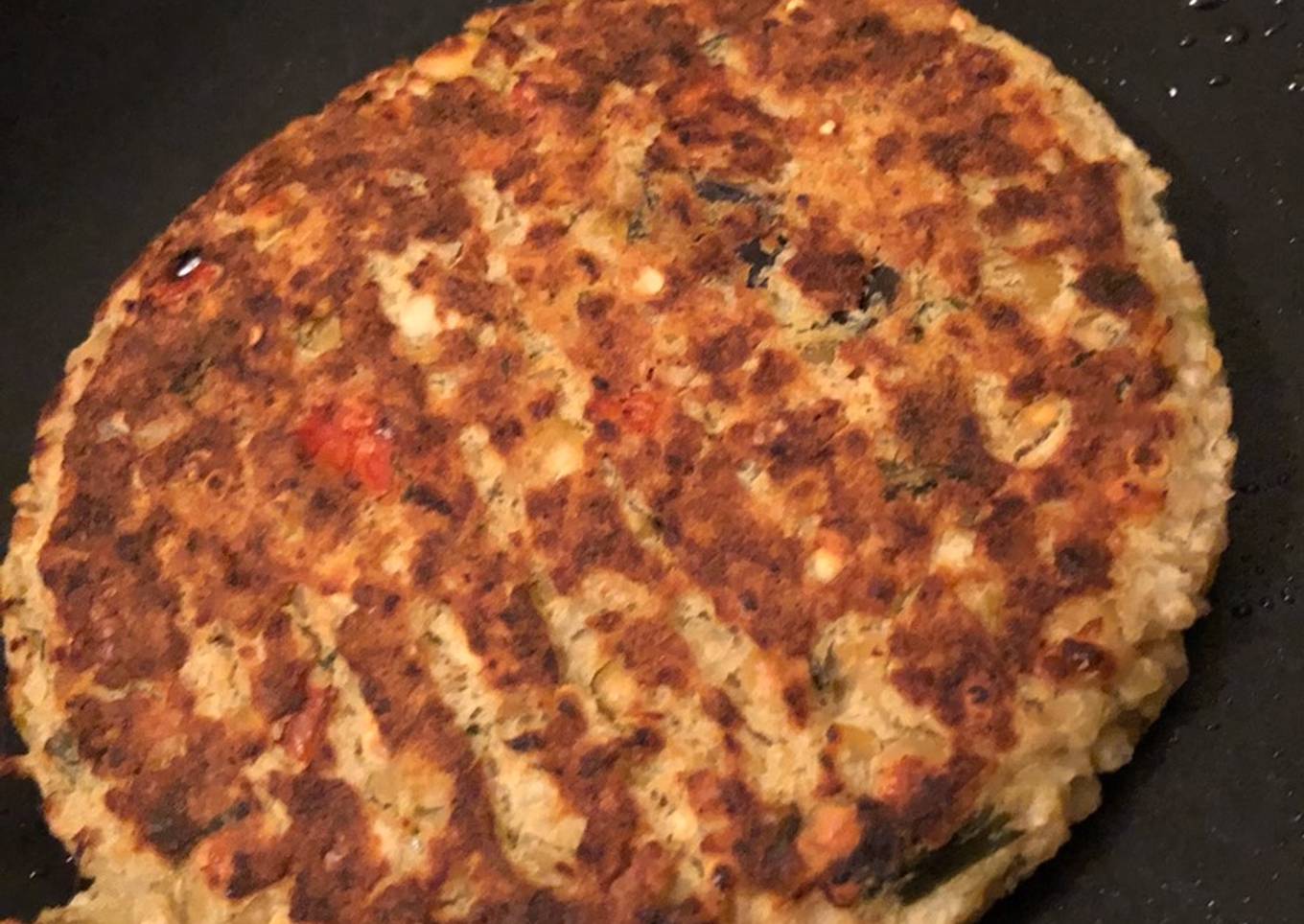 - Agregar la berenjena al sofrito e ir integrando bien, y después mezclar eso a los garbanzos con los huevos y las semillas molidas e integrar bien!