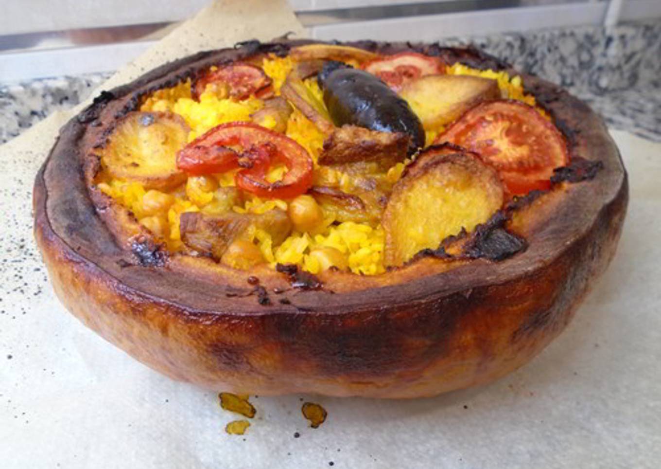 - Colocar el sofrito con el arroz dentro de la calabaza.
