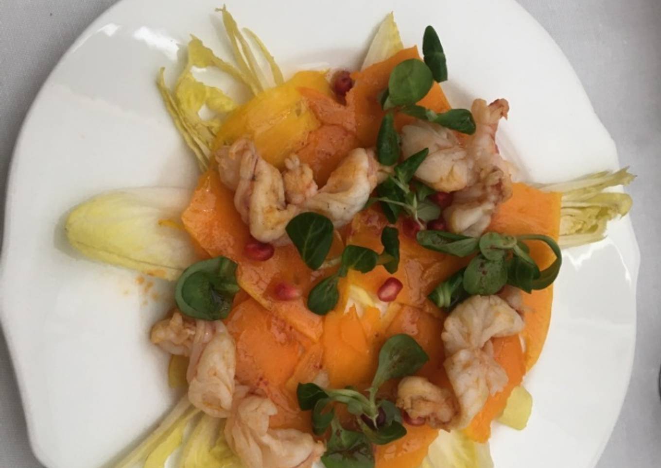 Carpacho de calabaza 🎃 con gambas 🍤 y endivias 🤪