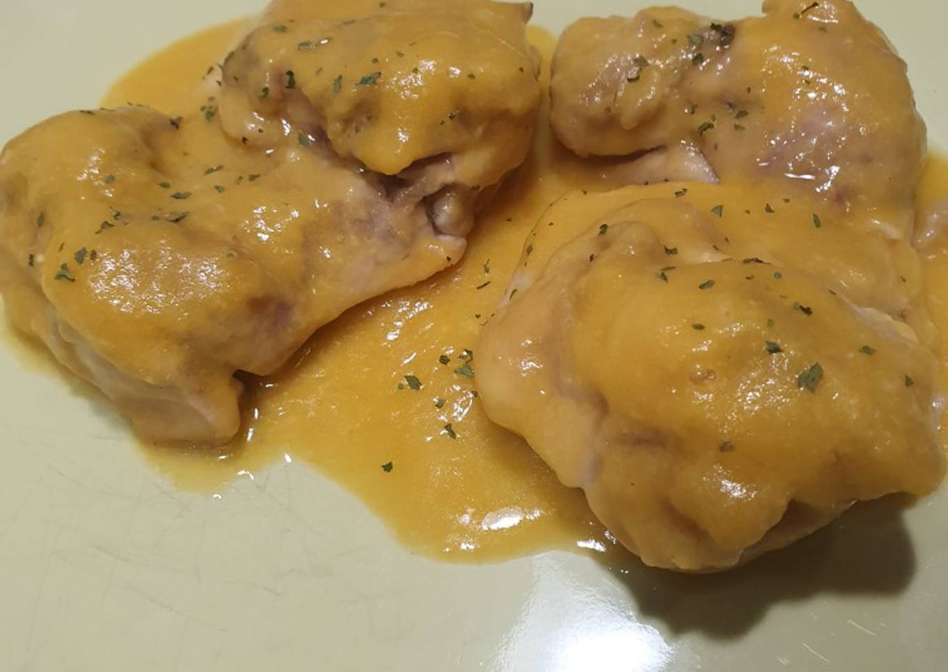 Steps to make to make Contramuslo de pollo en salsa de calabaza y queso tierno