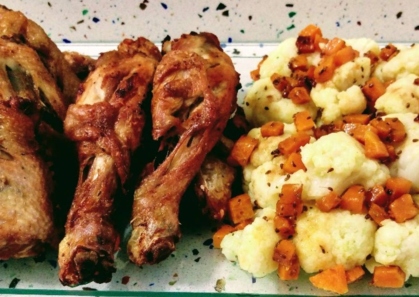 Pollo frito y coliflor salteada con calabaza y anís