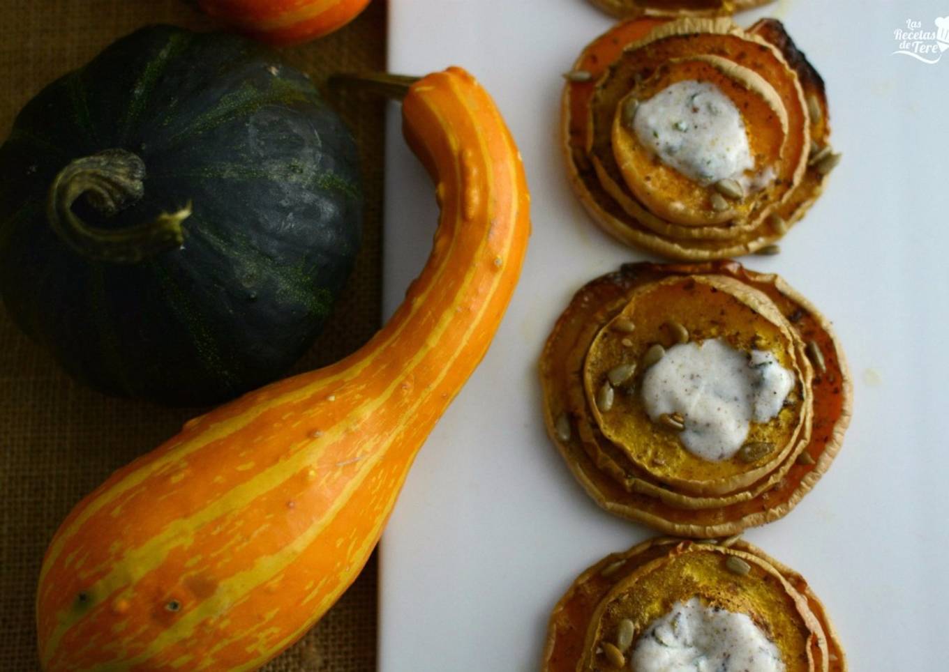Calabaza al horno con salsa de yogur especiada