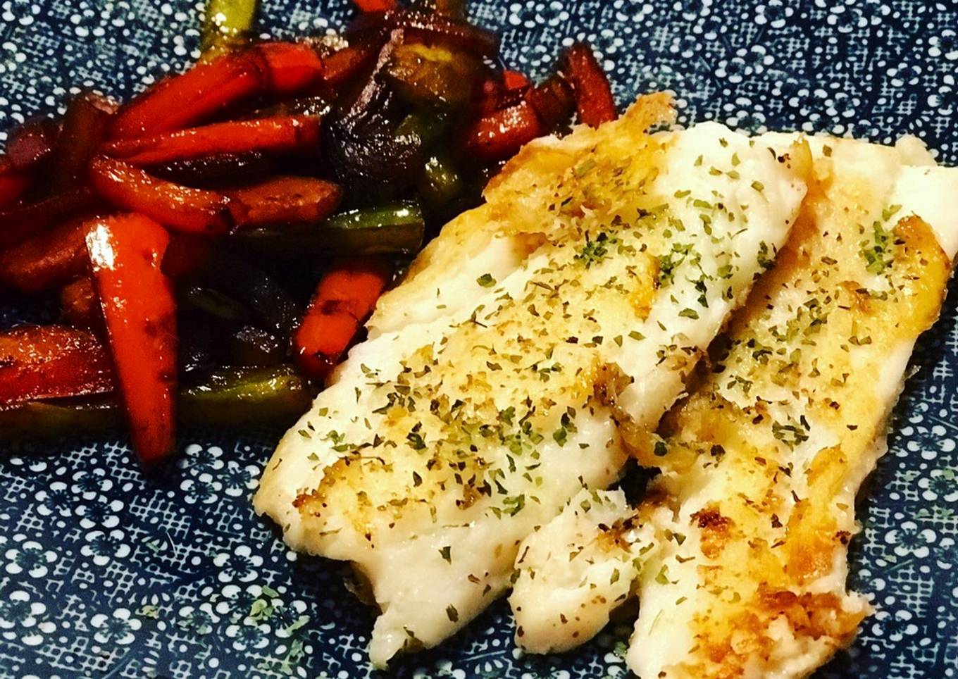 - El pescado lo hice a la plancha con un poco de aceite lo justo para que no se pegue y le puse ajo molido y perejil picado. Una pizca de sal y a cenar 💃💃