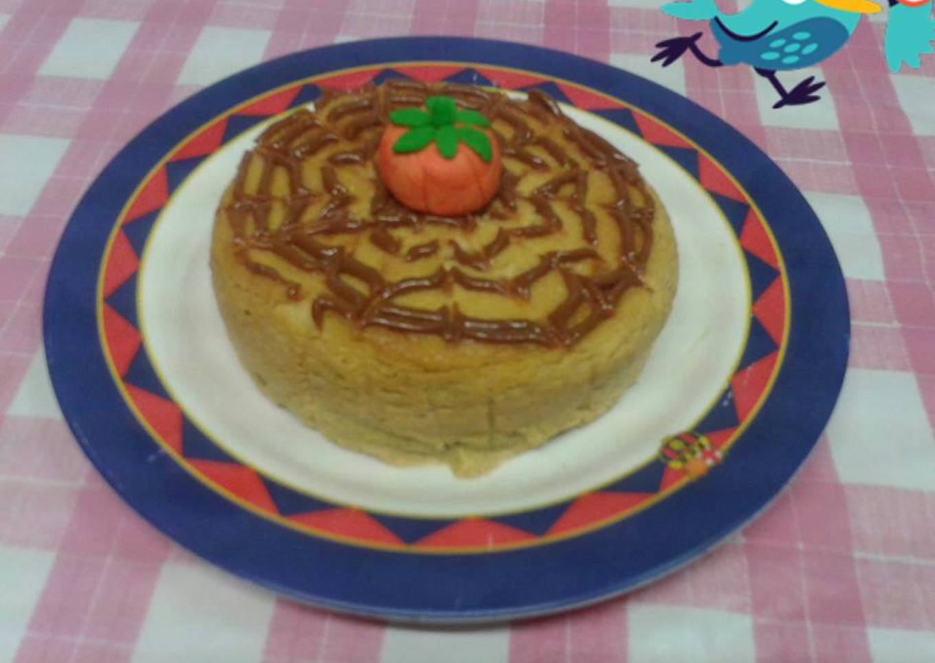 - Tapa el molde abajo por fuera con papel de aluminio si es desmontable para que al hacer al baño maría no entre el agua . Espero haberla explicado bien , cuando este fría puedes adornar a tu gusto , yo he hecho una araña con dulce de leche.