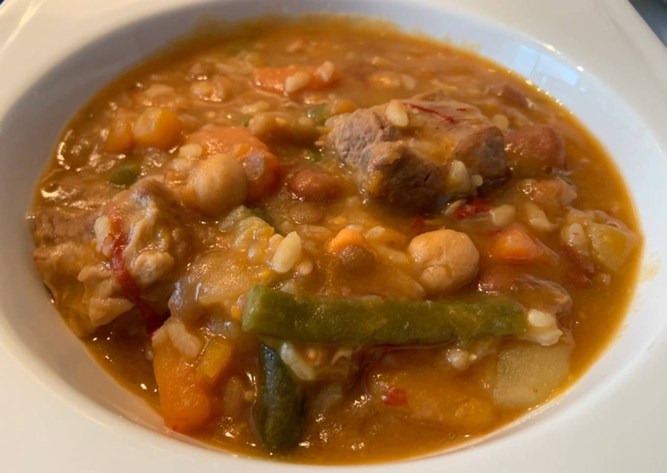 - Dejar cocer una hora a fuego lento 2 horas, y 15 minutos antes de terminar añadir el arroz.