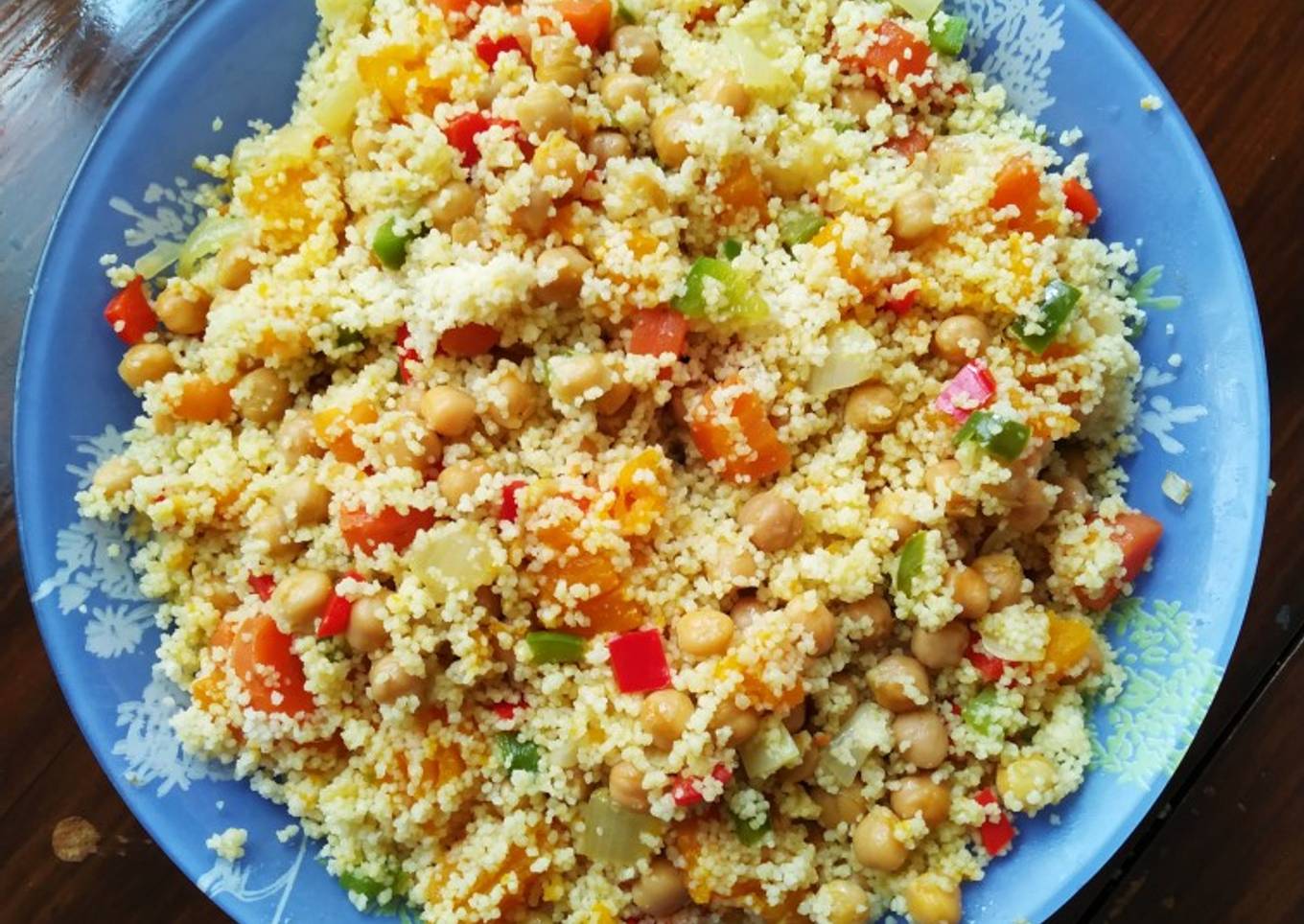 - Mezcla con cuidado, el cuscús/bulgur con la zanahoria, la calabaza y el sofrito con los garbanzos.